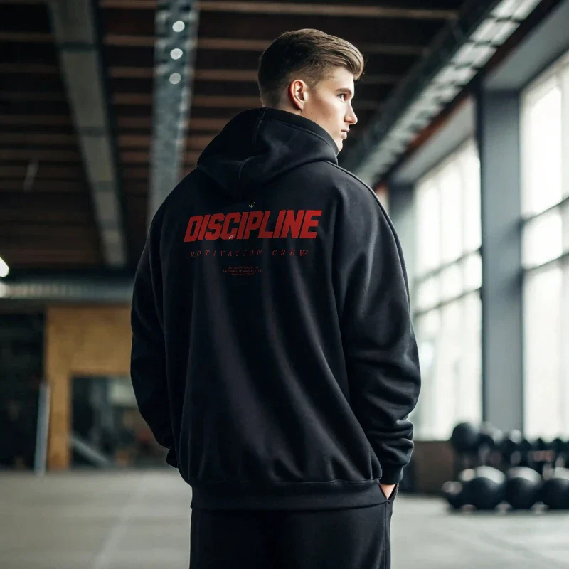 "Disciplina" es la capacidad de mantener el compromiso y el esfuerzo constante, incluso cuando falta la motivación o las ganas. Llevar esta sudadera es un recordatorio visual de que los resultados no dependen solo del talento, sino de la perseverancia diaria y la fuerza de voluntad para superar excusas y seguir adelante.