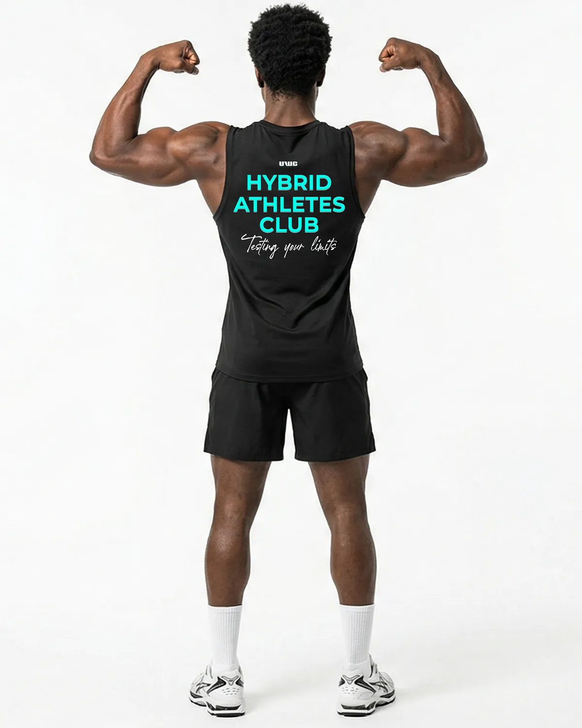 La Tank Top HYBRID ATHLETES CLUB en color negro es la armadura definitiva para los deportistas que comparten la misma obsesión por el rendimiento extremo y el entrenamiento híbrido de élite.
