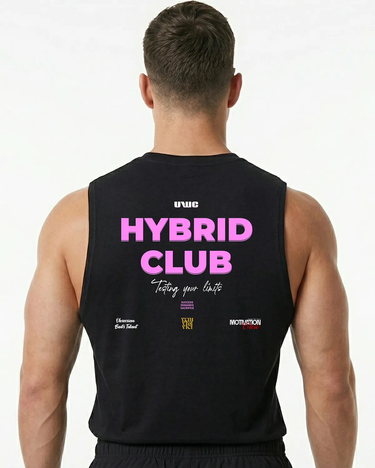 Únete a la élite del rendimiento con la Tank Top HYBRID CLUB, una edición en color negro absoluto diseñada para quienes entienden que el entrenamiento híbrido también es una cuestión de comunidad y exigencia compartida.